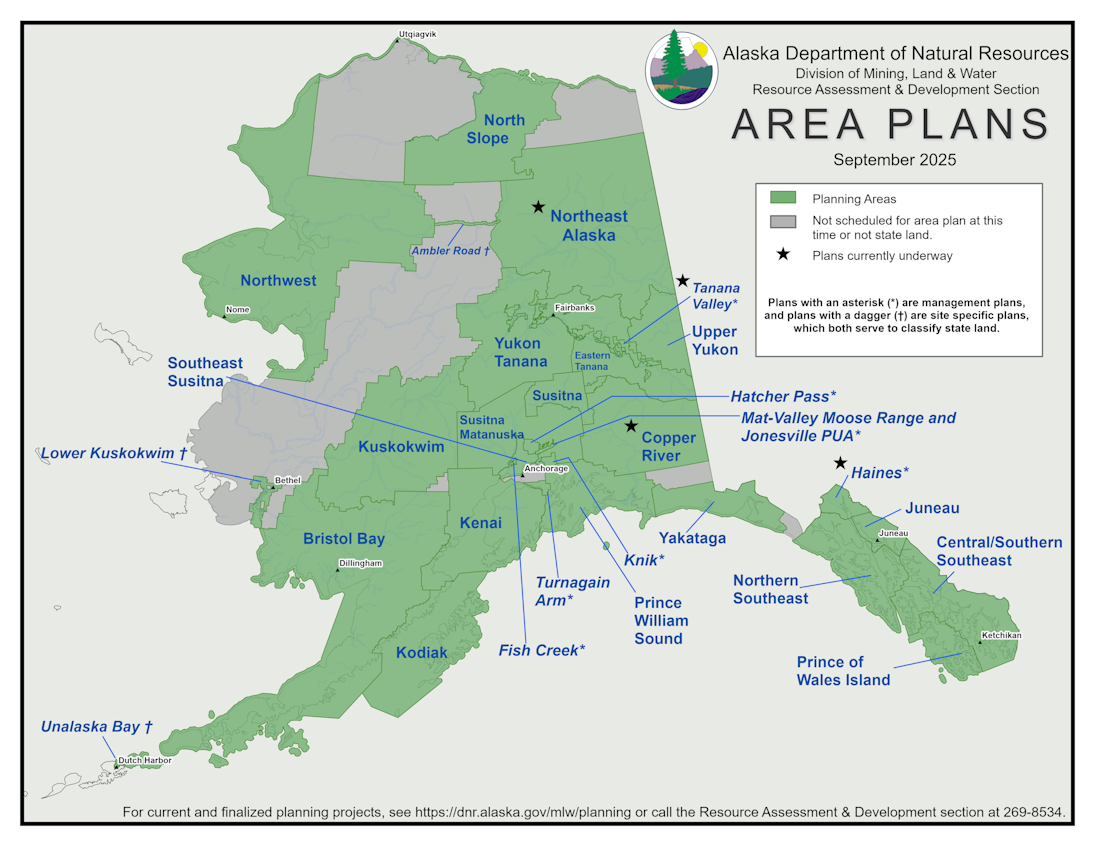 There are statutory requirements for planning as well. AS 38.04.065 requires that state land